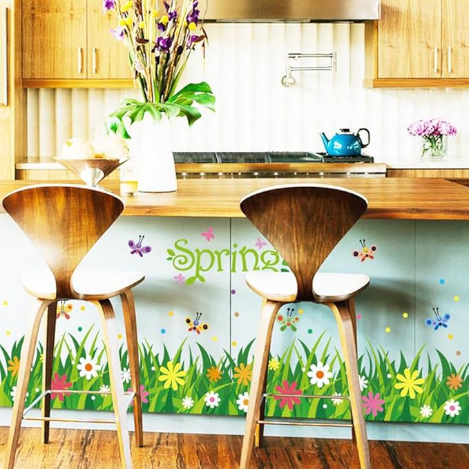 সুন্দর নকশা: আকর্ষণীয় Removable Grass Flowers and Butterfly Vinyl 3D Wall Stickers ডিজাইন, যা আপনার দেয়ালকে রঙিন ও প্রাণময় করবে।