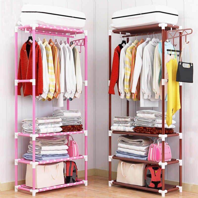 • Coat Rack Stainless steel nonwovens Simple Assembly can be removed Bedroom Hanging storage clothes hanger wardrobe( Rendom Color)